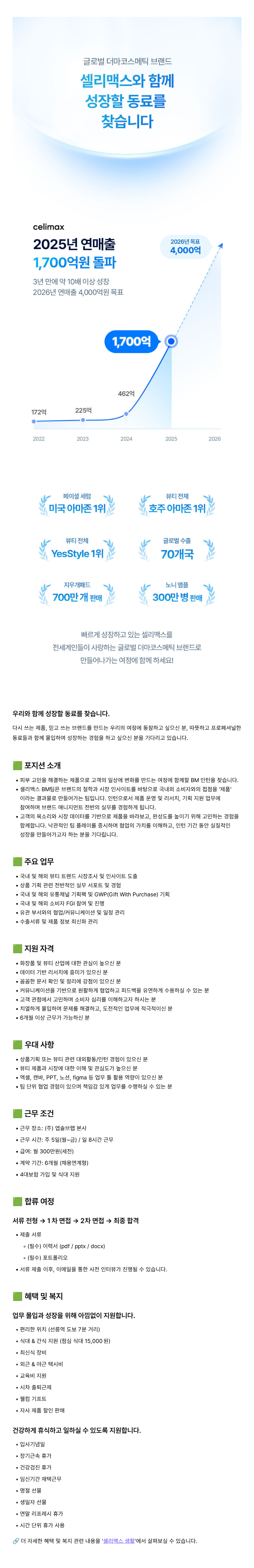 [셀리맥스] BM(상품기획) 인턴 채용