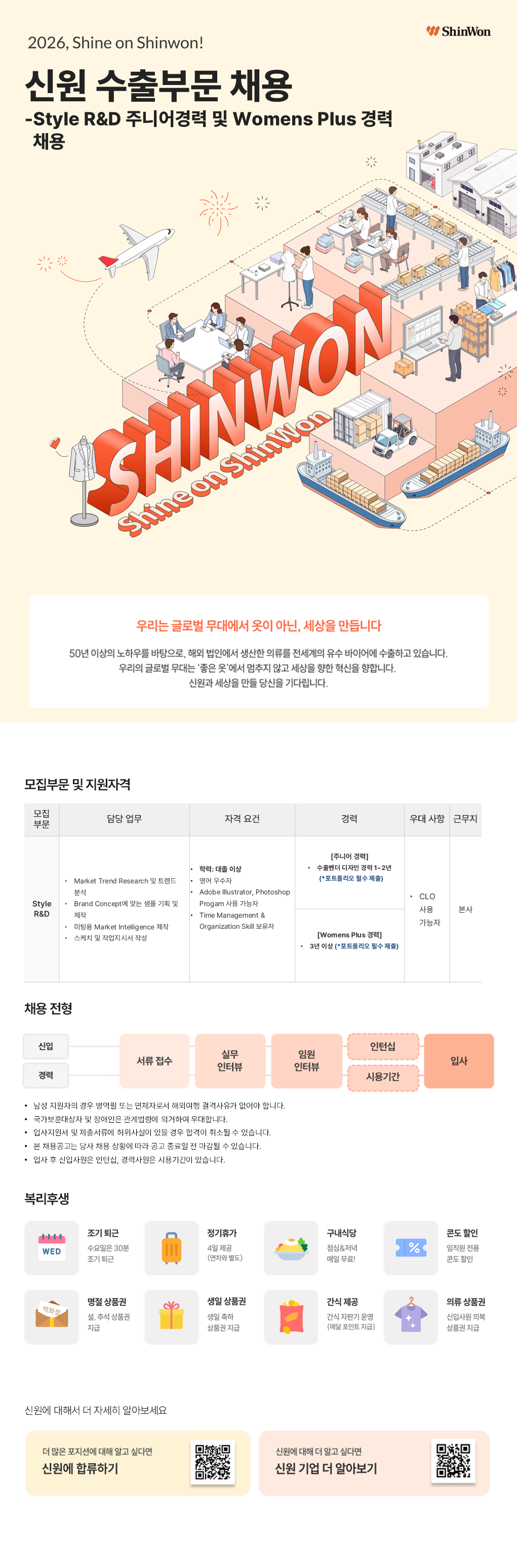 [신원] 수출부문 Style R&D 주니어경력 및 Womens Plus 경력 채용