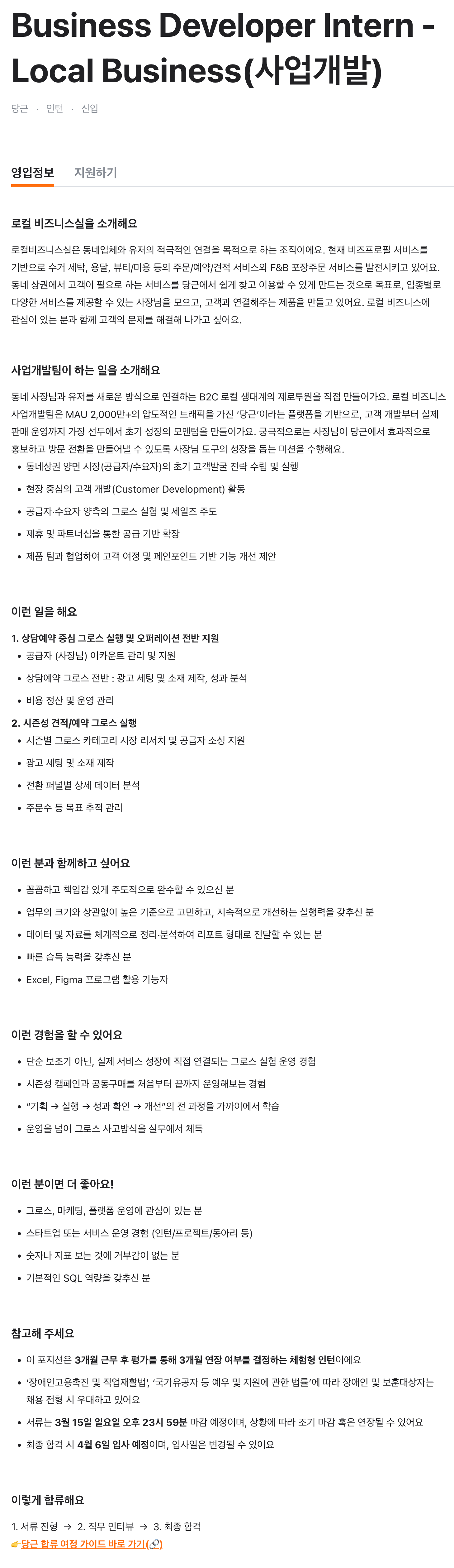 Business Developer Intern - Local Business(사업개발)