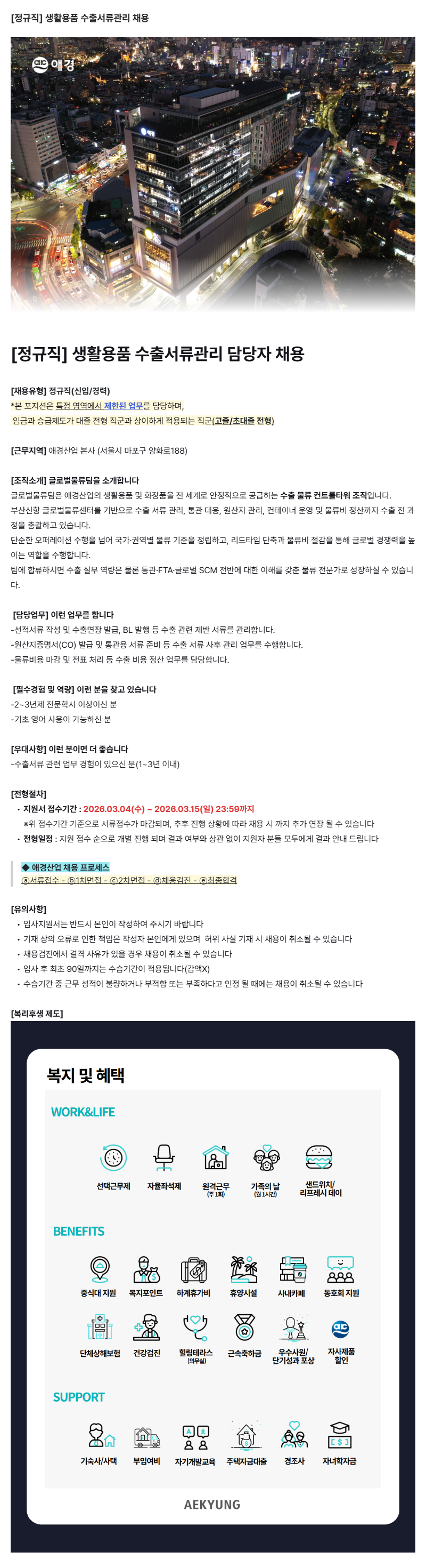 [애경산업(주)] 수출서류관리 신입/경력 채용