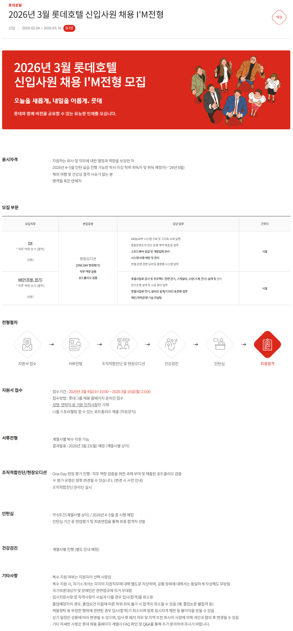 [롯데호텔] 2026년 3월 롯데호텔 신입사원 채용 I'M전형