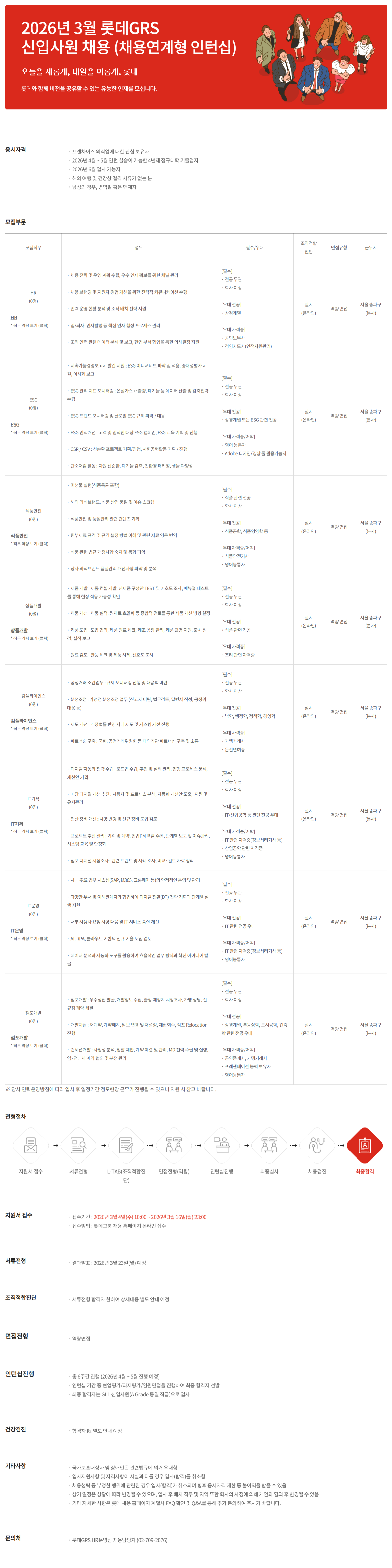 [롯데지알에스] 2026년 3월 롯데GRS 신입사원 채용(채용연계형 인턴십)