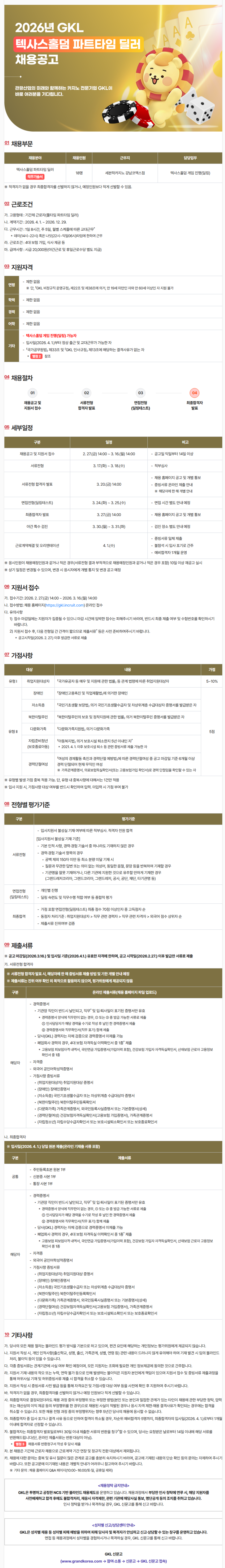 [그랜드코리아레저] 2026년 택사스홀덤 파트타임 딜러 채용