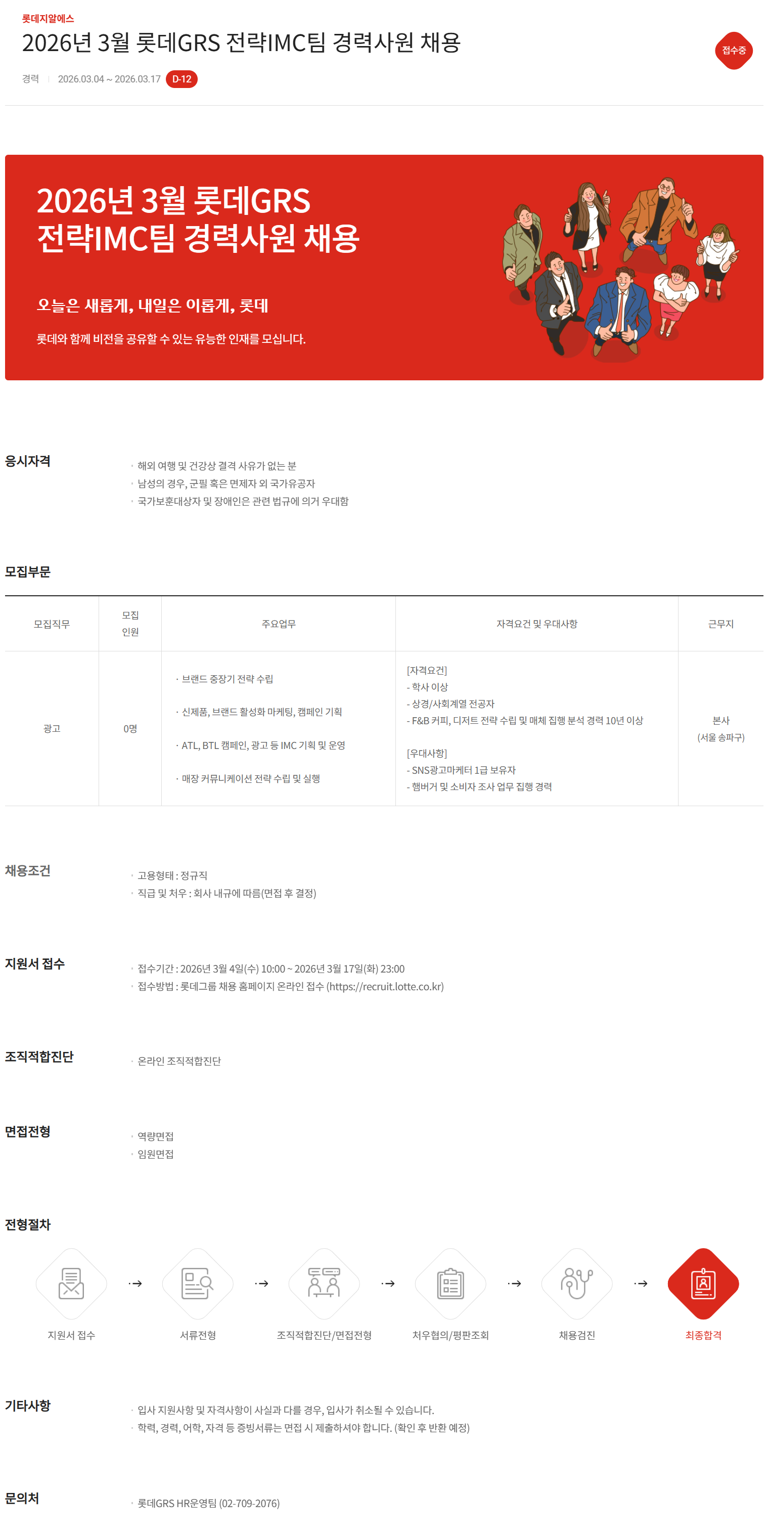 [롯데GRS] 2026년 3월 전략IMC팀 경력사원 채용