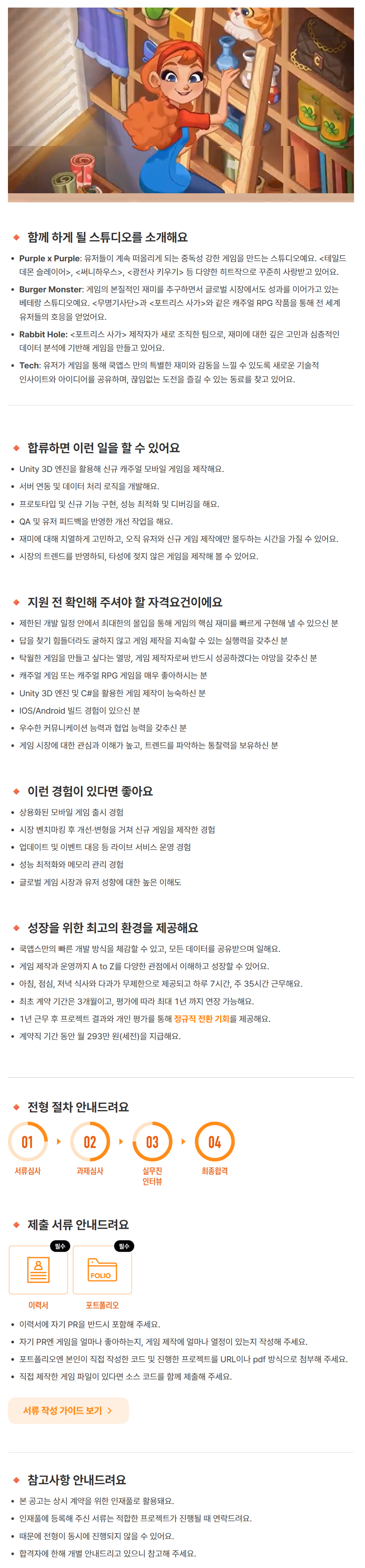 [쿡앱스] <신규 프로젝트> 캐주얼 게임 클라이언트 프로그래머 (계약직 · 인재 Pool)