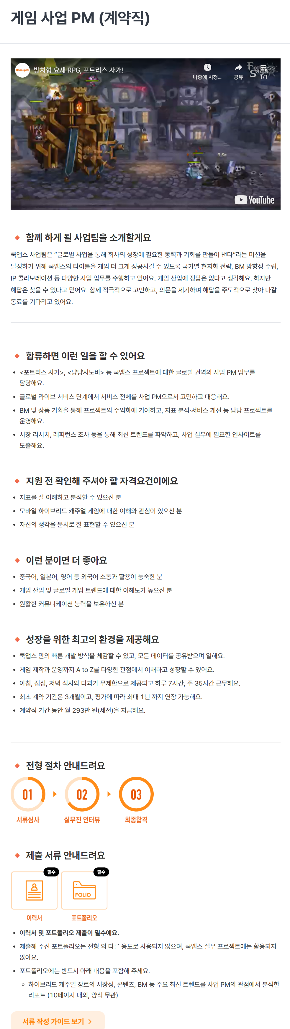 [쿡앱스] 게임 사업 PM (계약직)