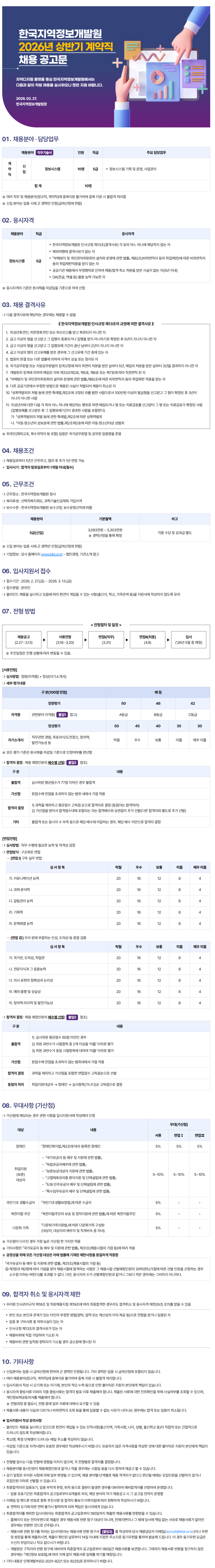 [한국지역정보개발원] 2026년 상반기 계약직 채용