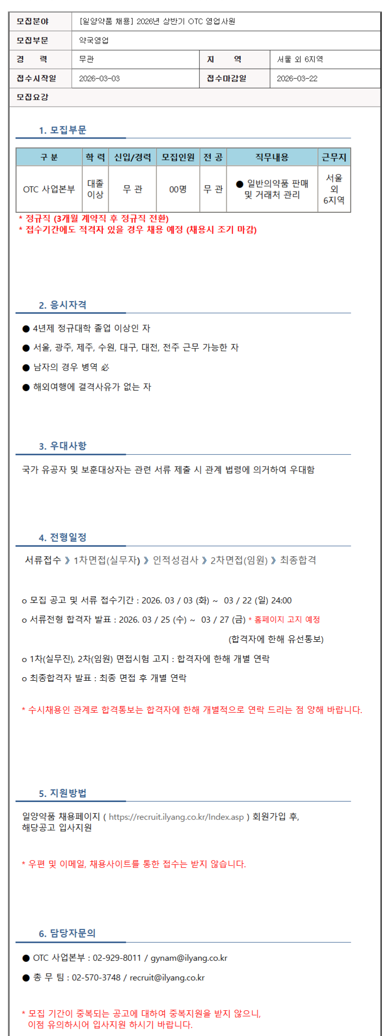 [일양약품] 2026년 상반기 OTC 영업사원