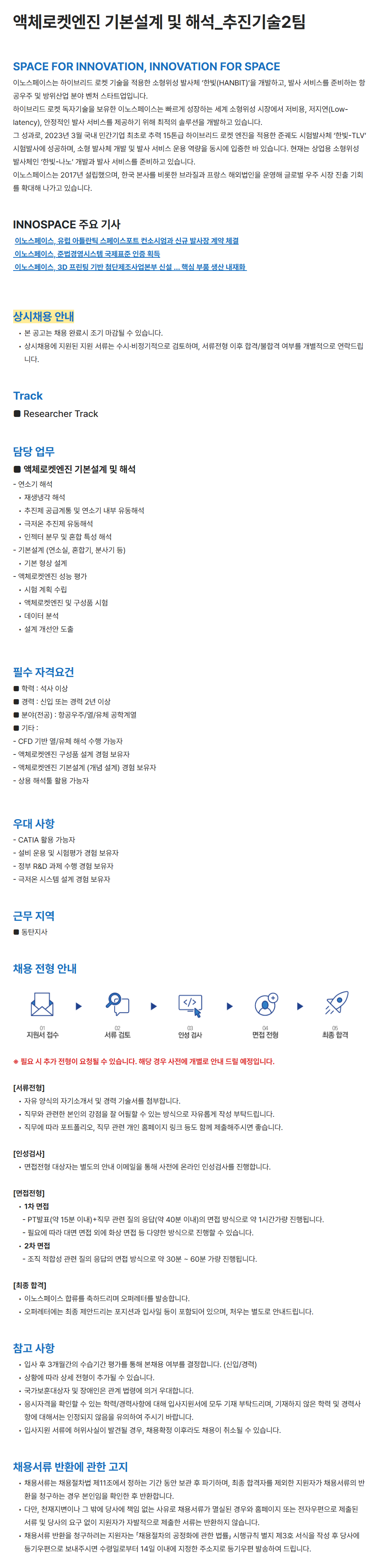 [이노스페이스] 액체로켓엔진 기본설계 및 해석_추진기술2팀