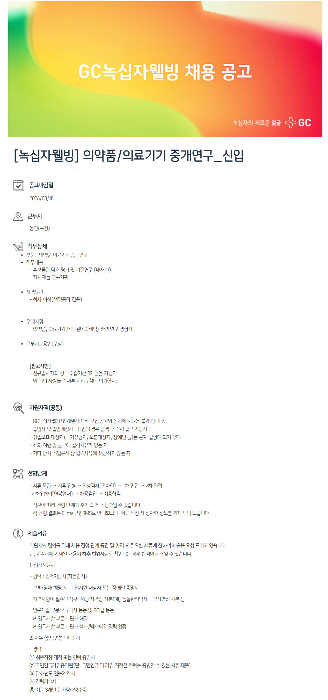 [GC녹십자웰빙] 의약품/의료기기 중개연구_신입