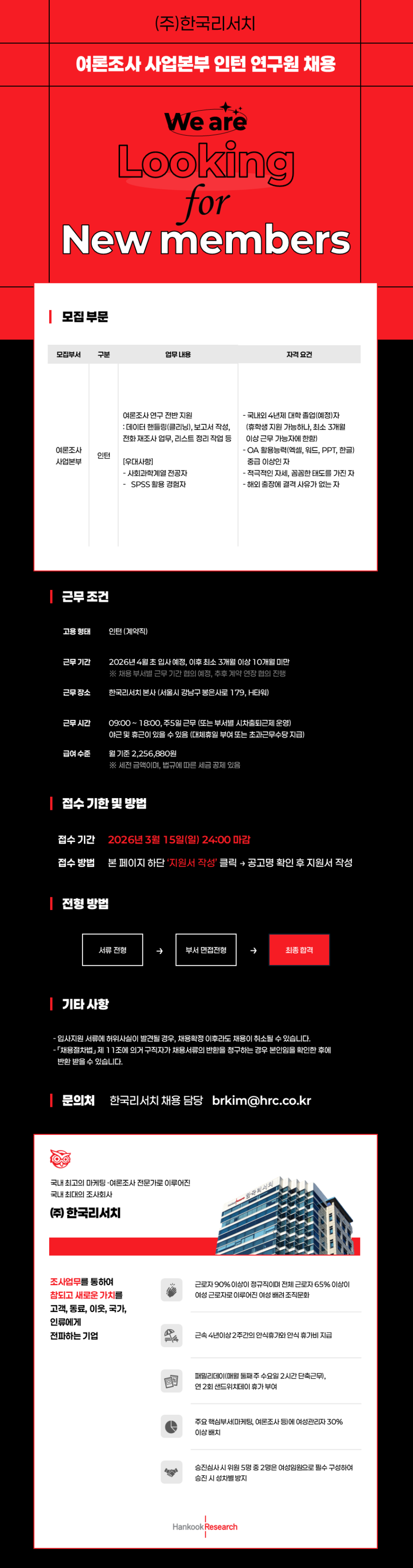 [한국리서치] 여론조사 사업본부 인턴 연구원 채용