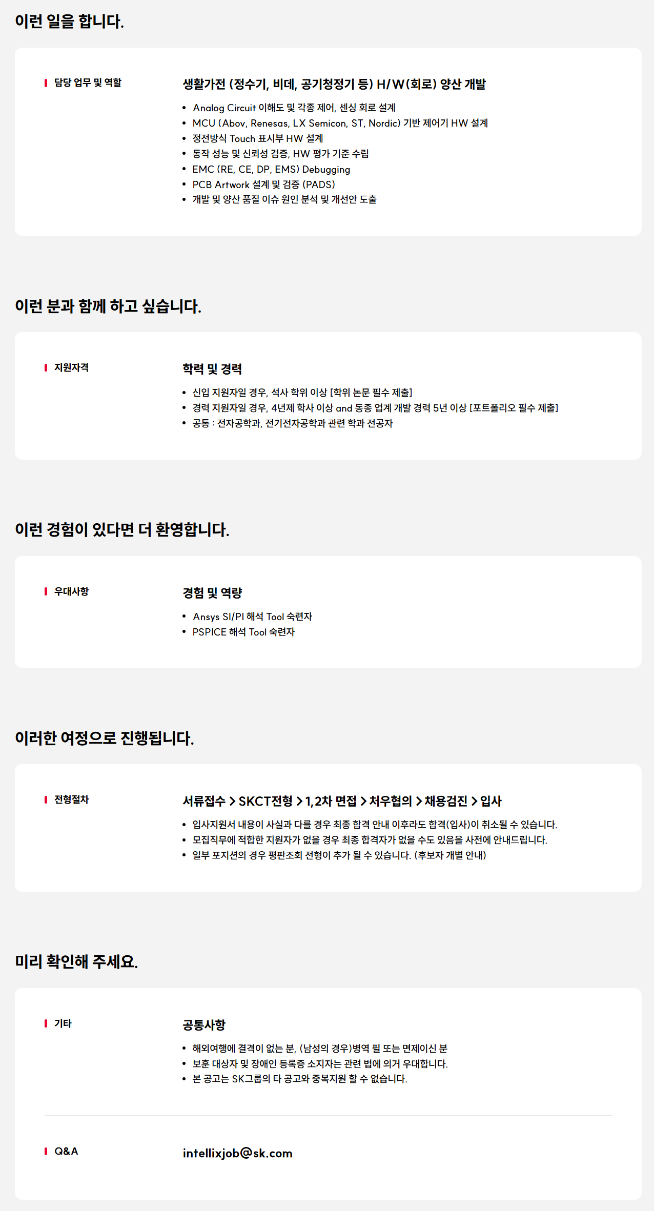 [SK인텔릭스] '26년 상반기 R&D본부 신입/경력직 채용 [H/W 회로 설계]