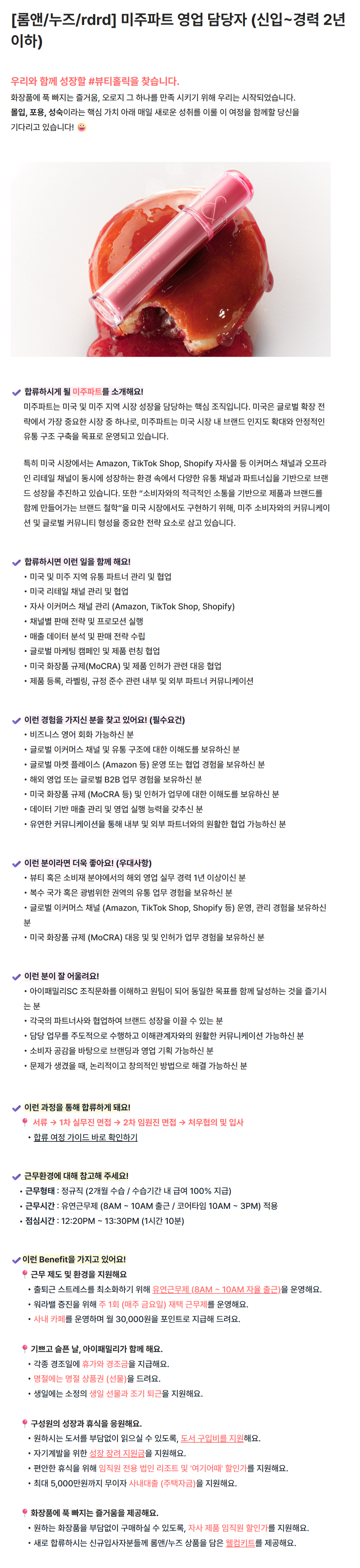 [아이패밀리SC] [롬앤/누즈/rdrd] 미주파트 영업 담당자 (신입~경력 2년 이하)