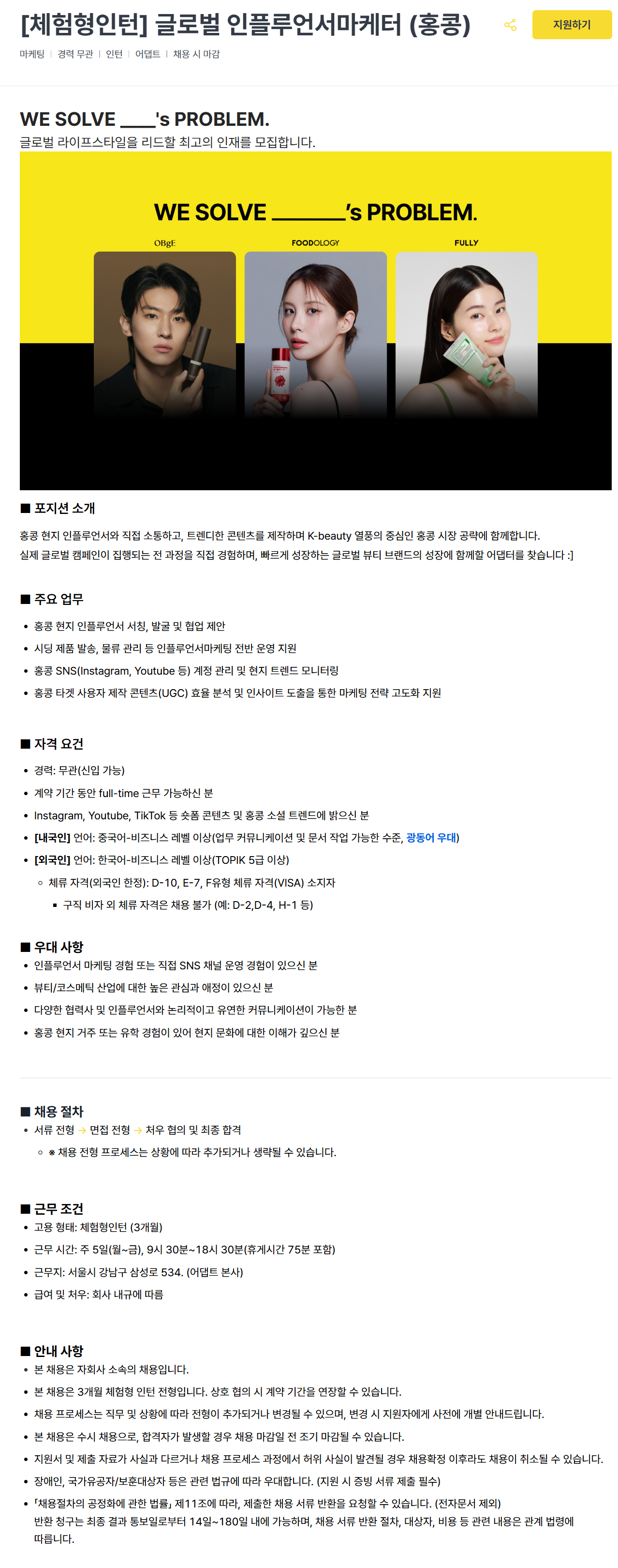 [어댑트] [체험형인턴] 글로벌 인플루언서 마케터 (홍콩)