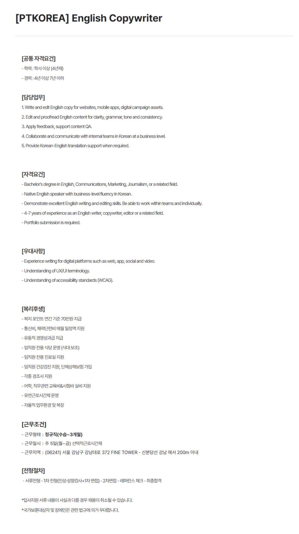 [PTKOREA] English Copywriter