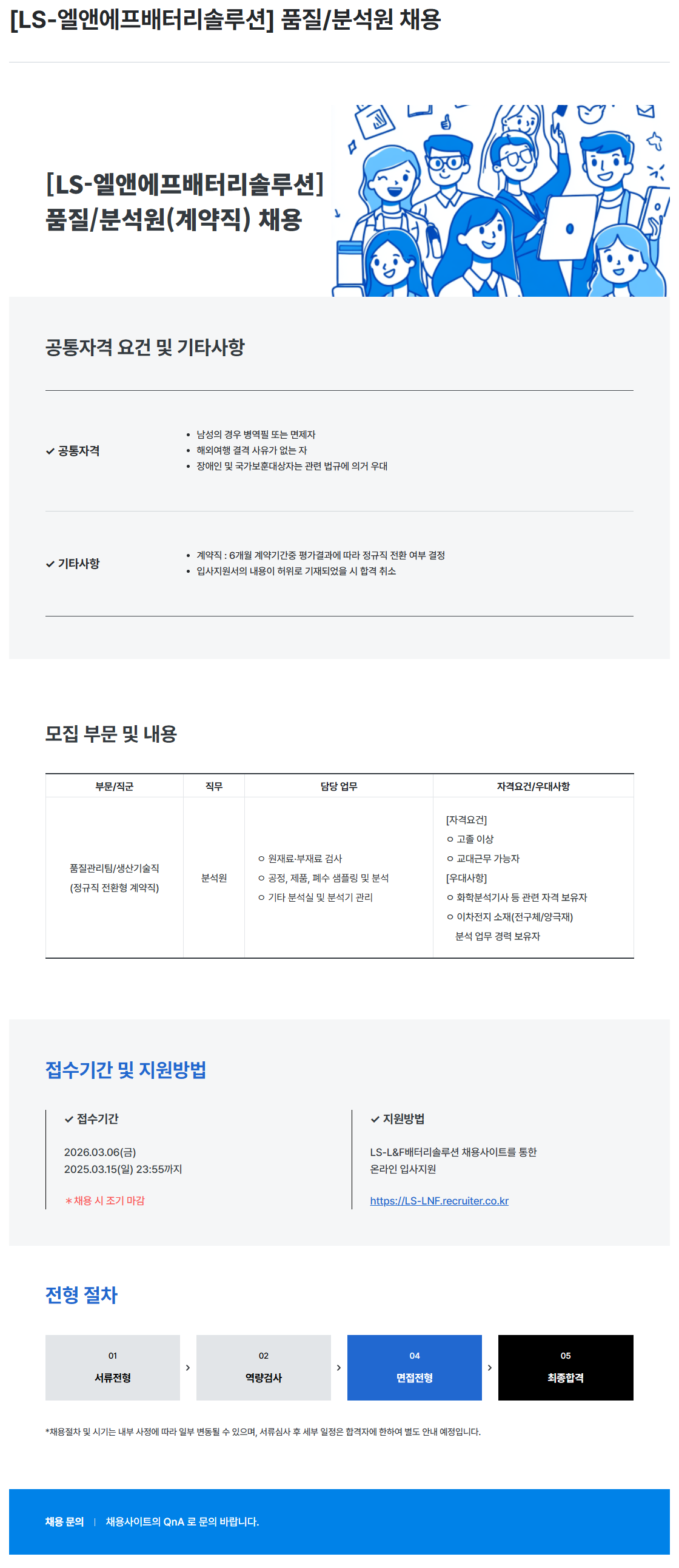 [LS엘앤에프배터리솔루션] 품질/분석원 채용
