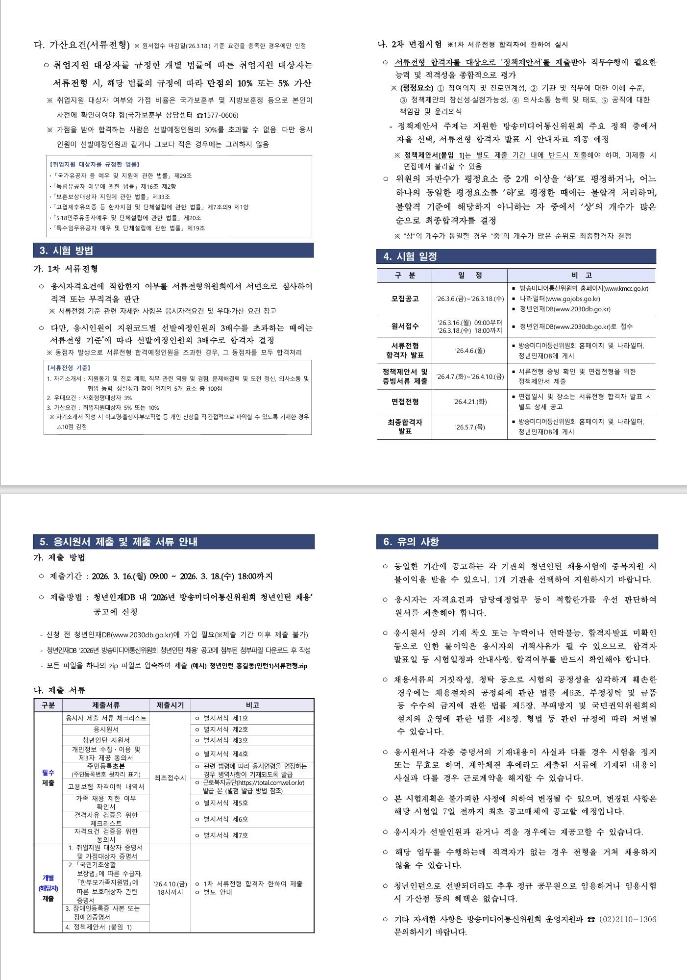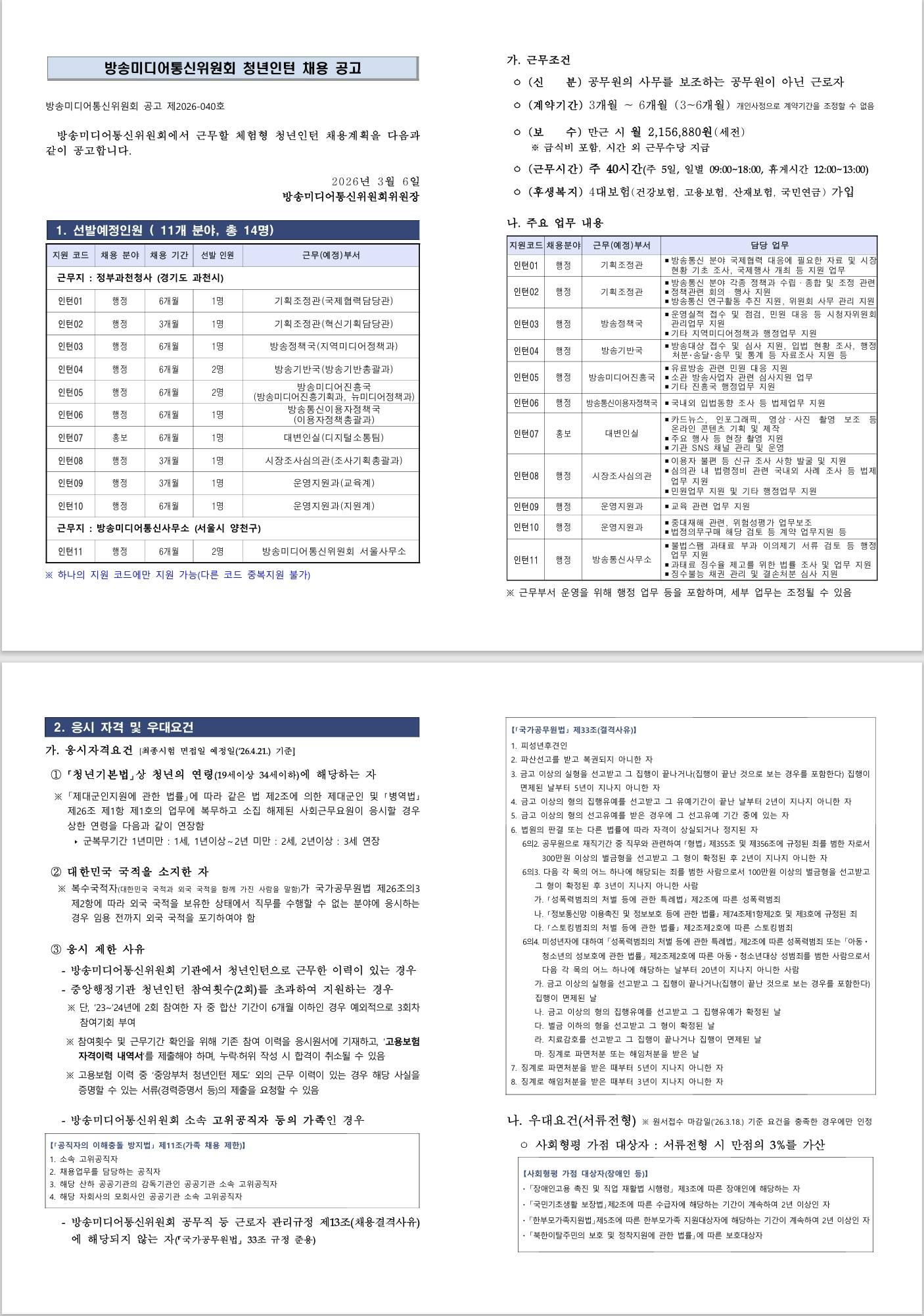 [방송미디어통신위원회] 방송미디어통신위원회 청년인턴 채용 공고