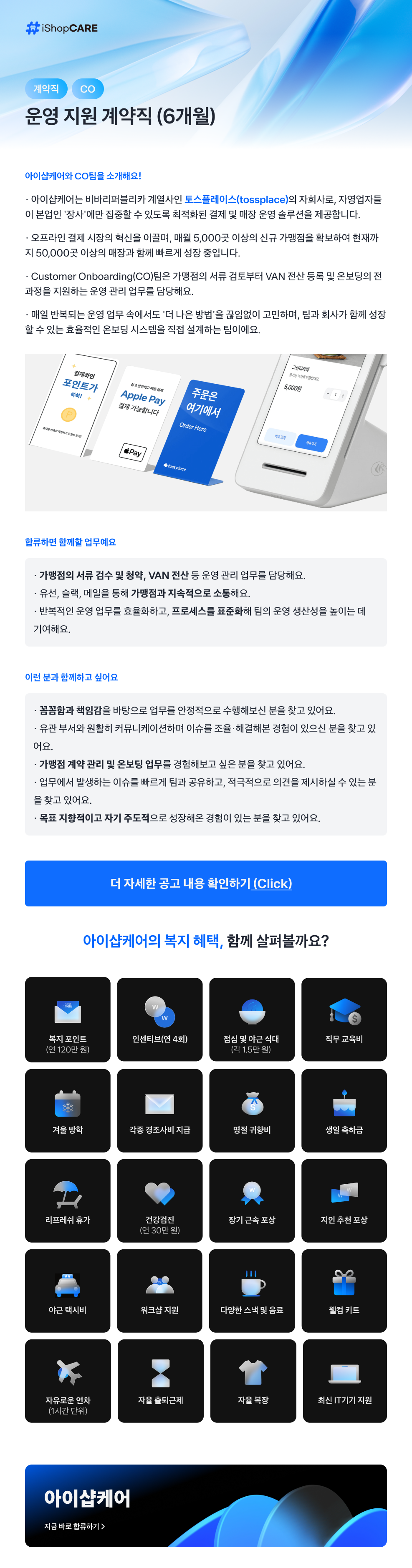 [토스플레이스 자회사] iShopCARE 운영지원 계약직 (6개월)