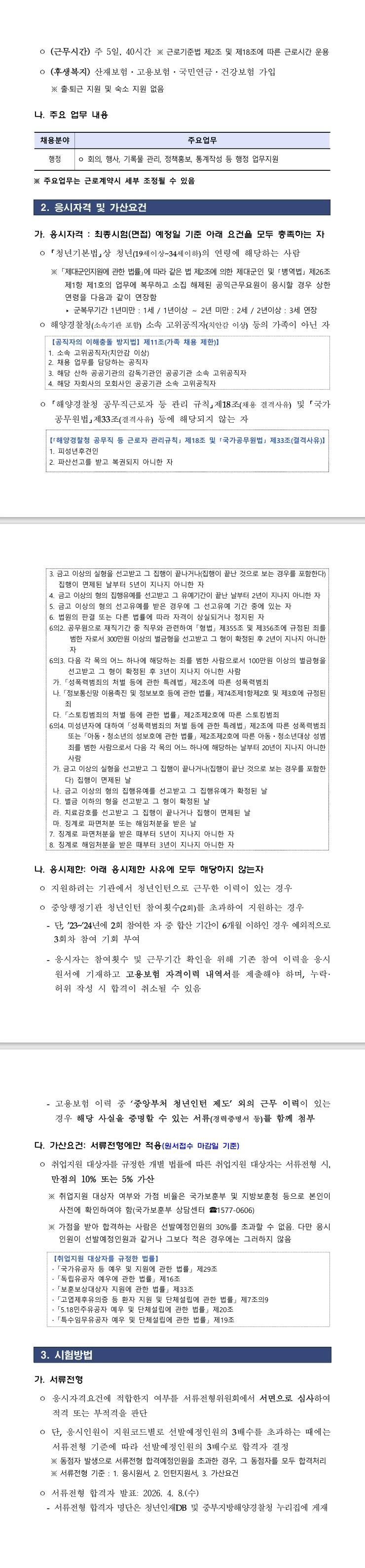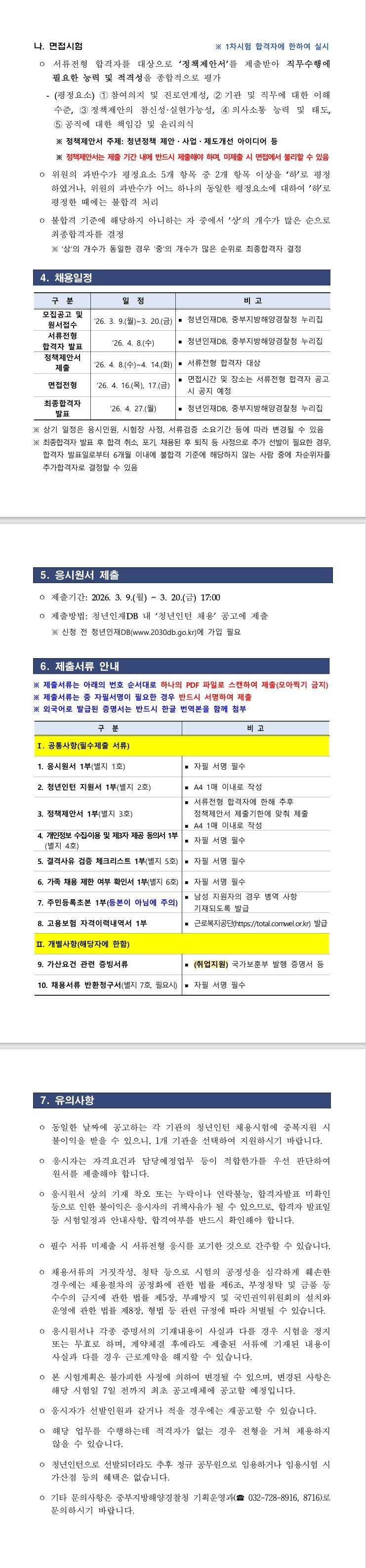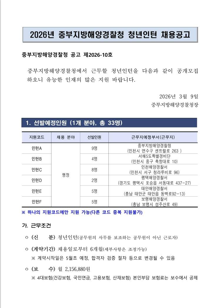 [중부지방해양경찰청] 2026년 중부지방해양경찰청 청년인턴 채용공고