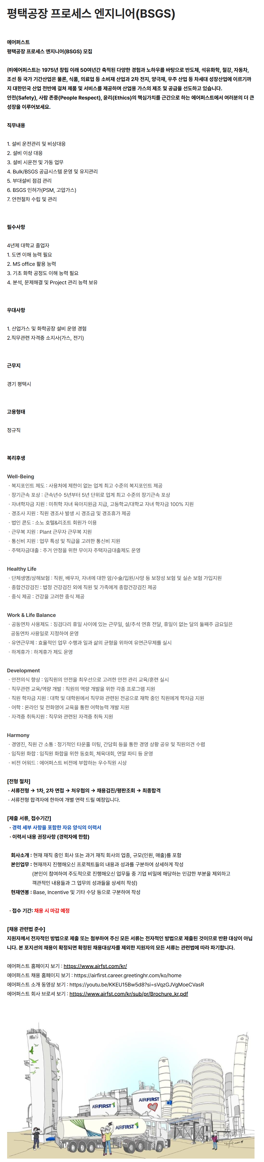 [에어퍼스트] 평택공장 프로세스 엔지니어(BSGS)