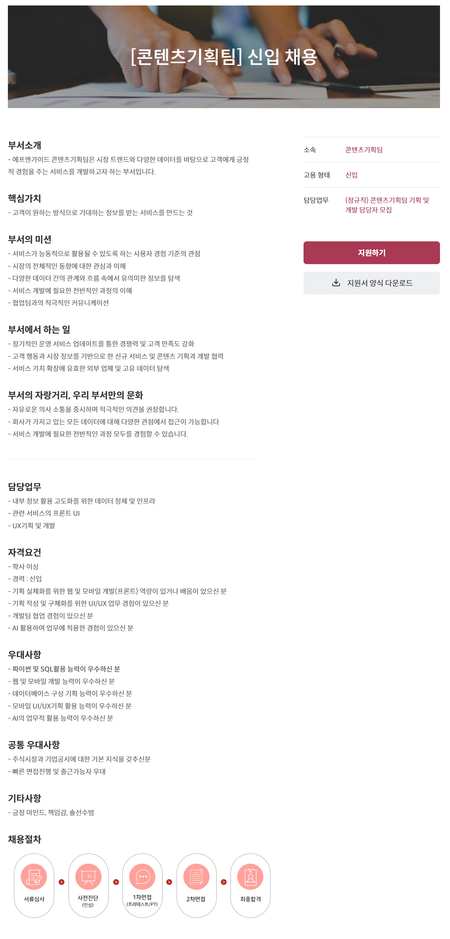 [에프앤가이드] [콘텐츠기획팀] 신입 채용