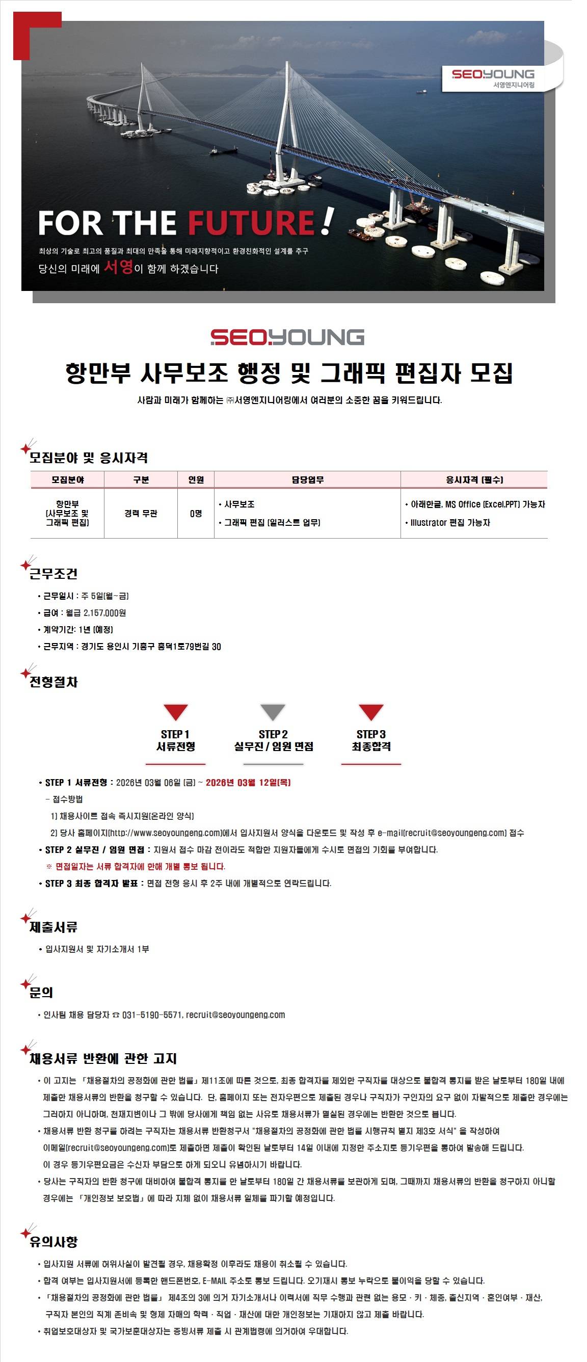 [서영엔지니어링] 항만부 사무보조 행정 및 그래픽 편집자 모집