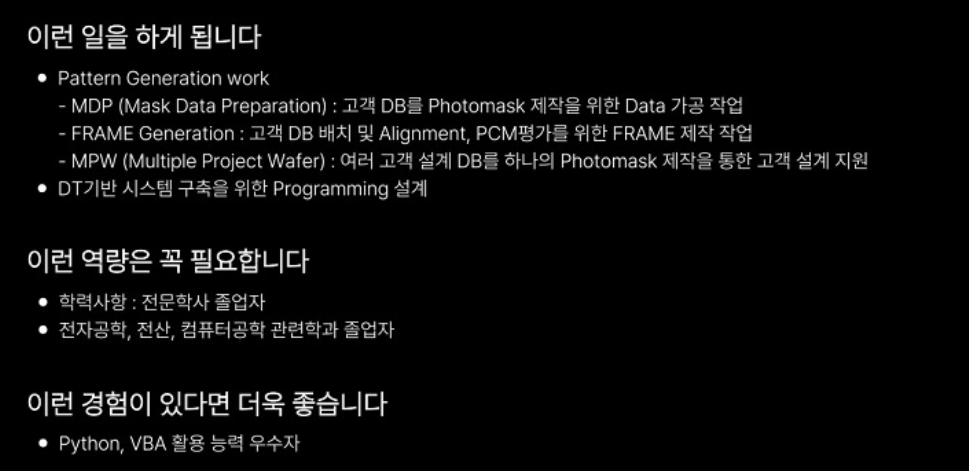 · MDP (Mask Data Preparation) : 고객 DB를 Photomask 제작을 위한 Data 가공 작업