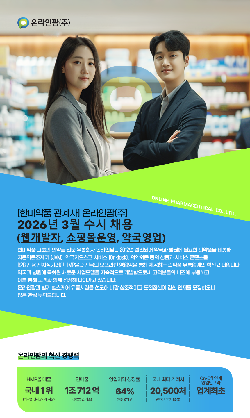 [온라인팜] (한미약품 관계사) 2026년 3월 수시 채용