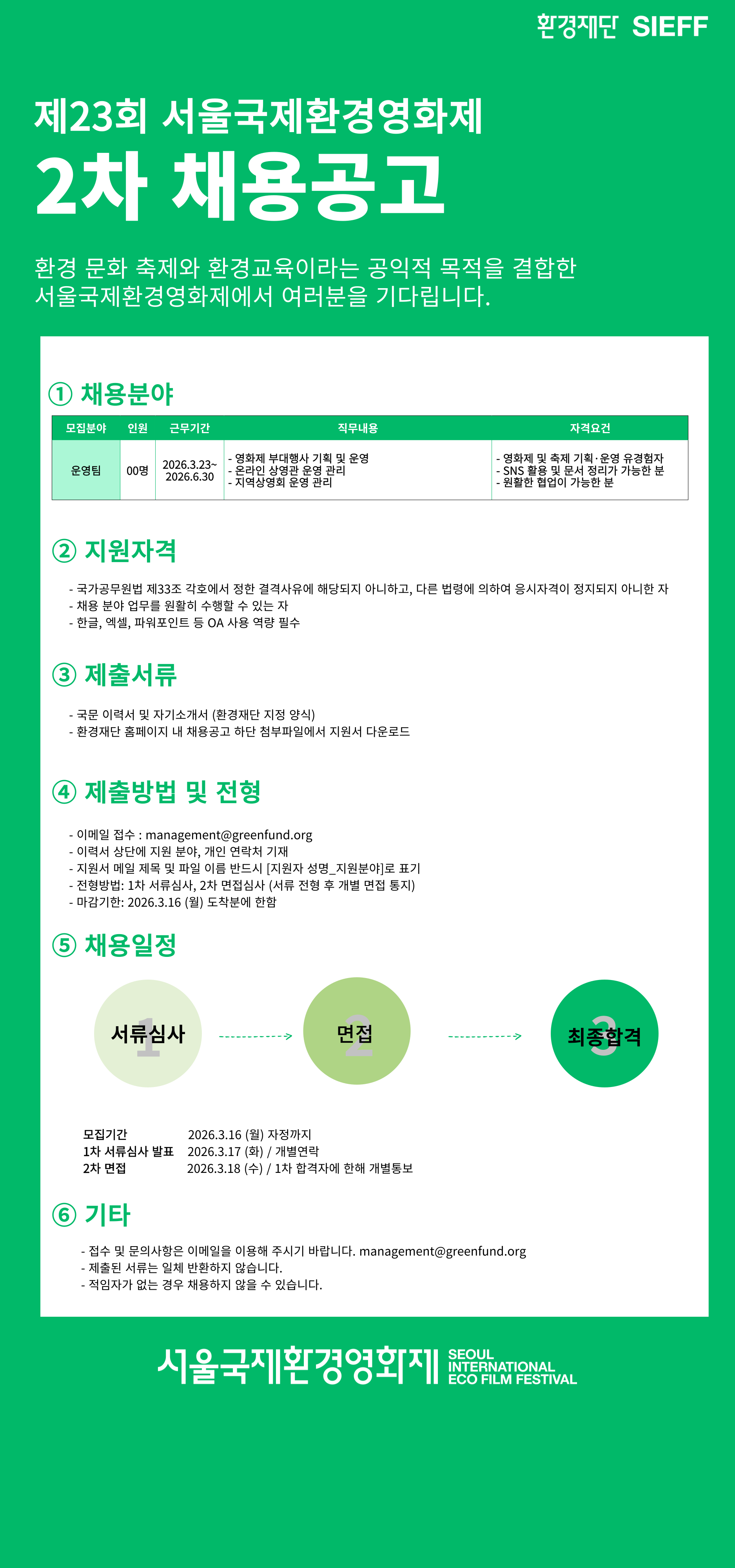 서울국제환경영화제에서 환경과 영화에 관심 있는 운영팀 스태프를 다음과 같이 모집하오니 많은 관심과 지원 바랍니다.