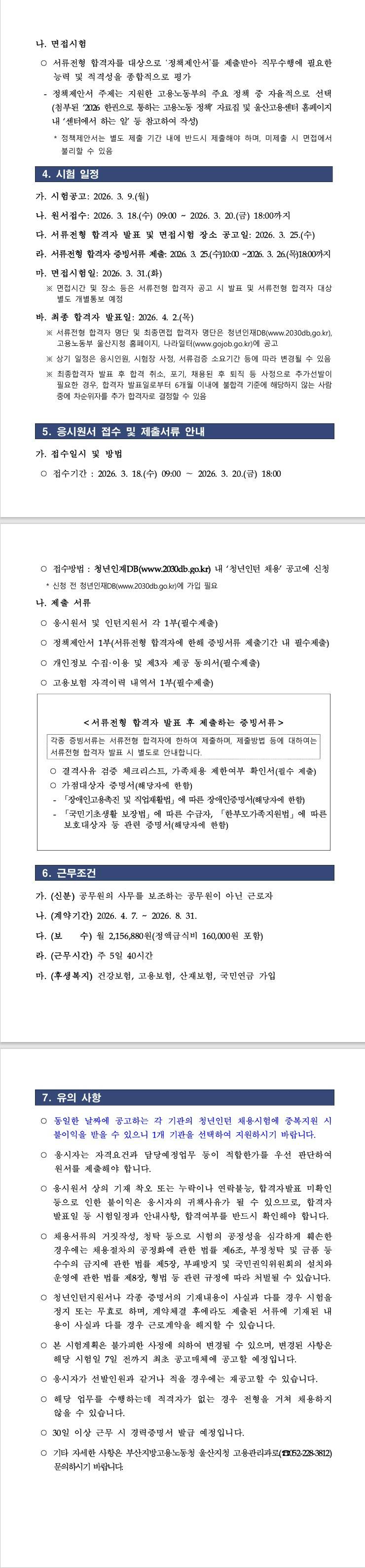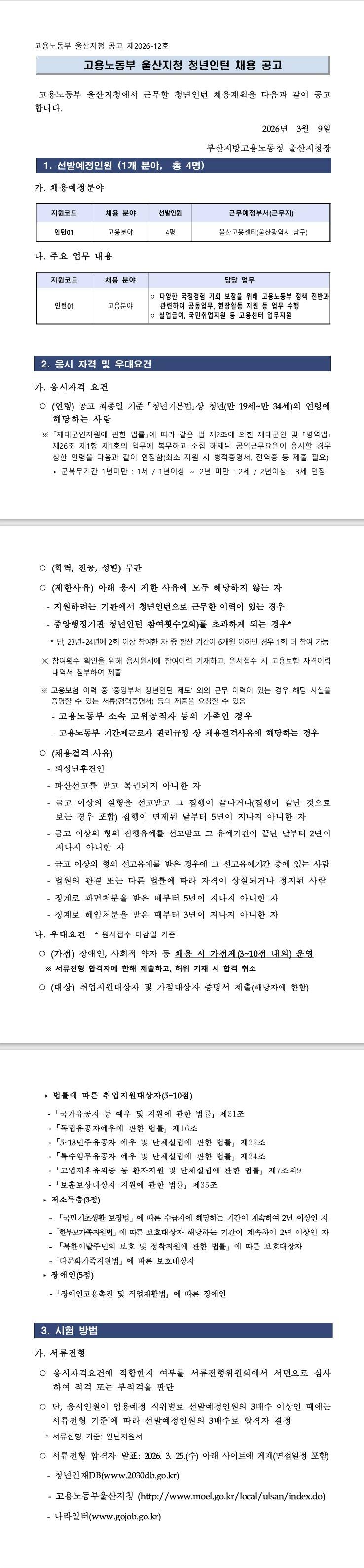 [울산고용노동지청] 고용노동부 울산지청 청년인턴 채용 공고