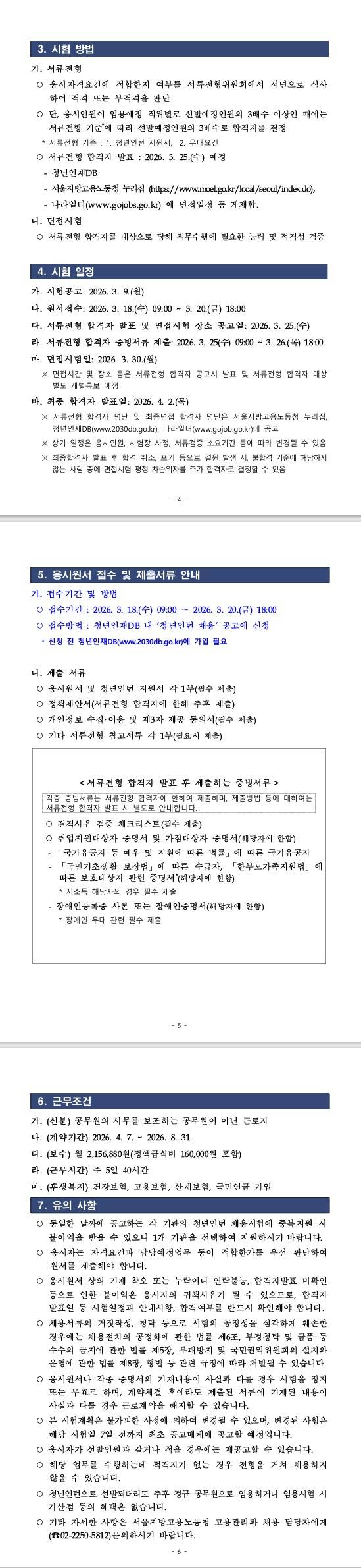 [서울지방고용노동청] 고용노동부 서울지방고용노동청 청년인턴 채용 공고