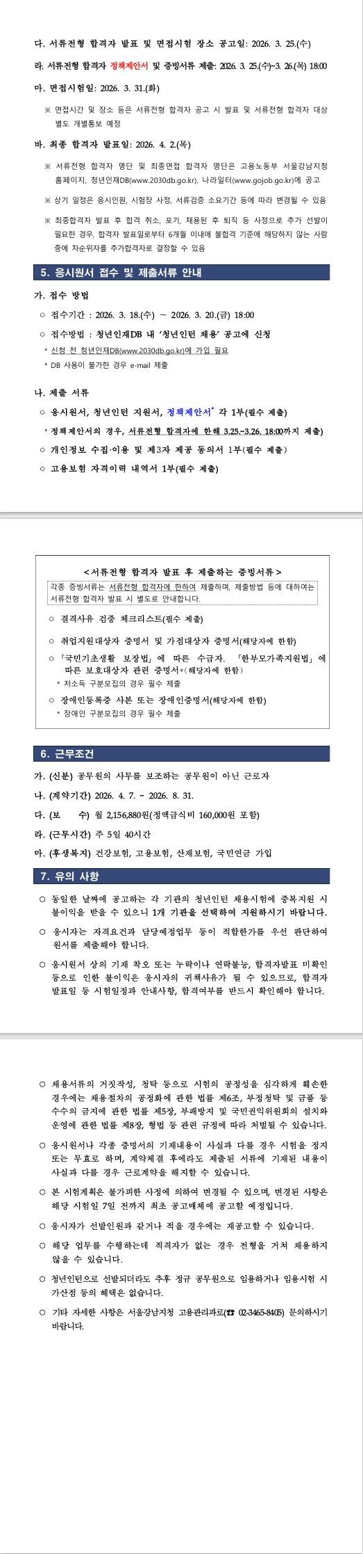 [서울강남고용노동지청] 고용노동부 서울지방고용노동청 서울강남지청 청년인턴 채용 공고