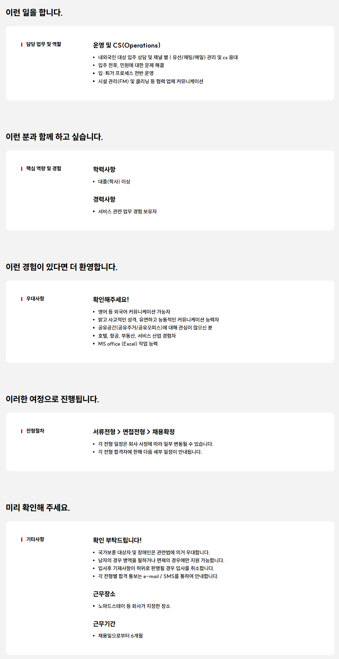- 서류전형 > 면접전형 > 채용확정