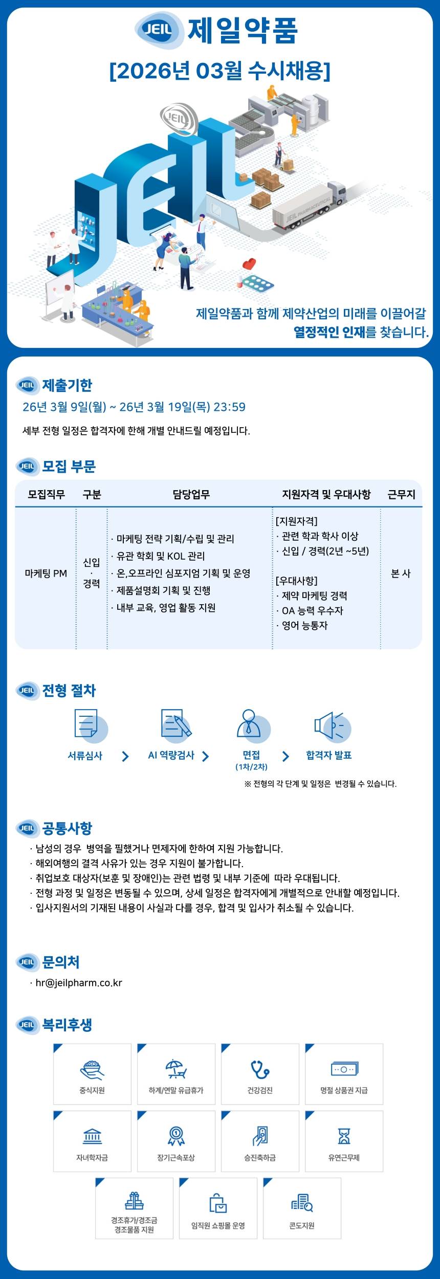 [제일약품] 마케팅 PM 신입/경력 채용