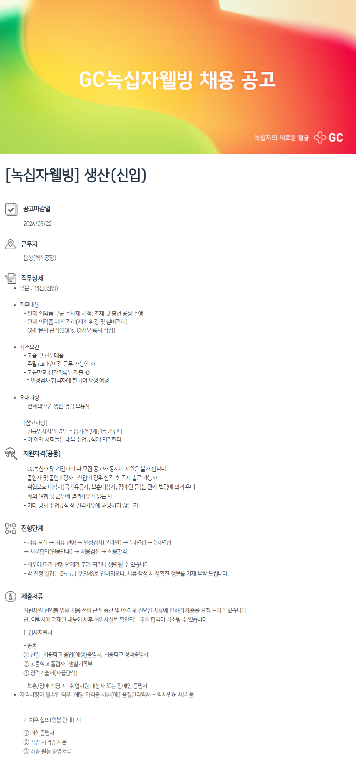 [GC녹십자웰빙] 생산(신입)