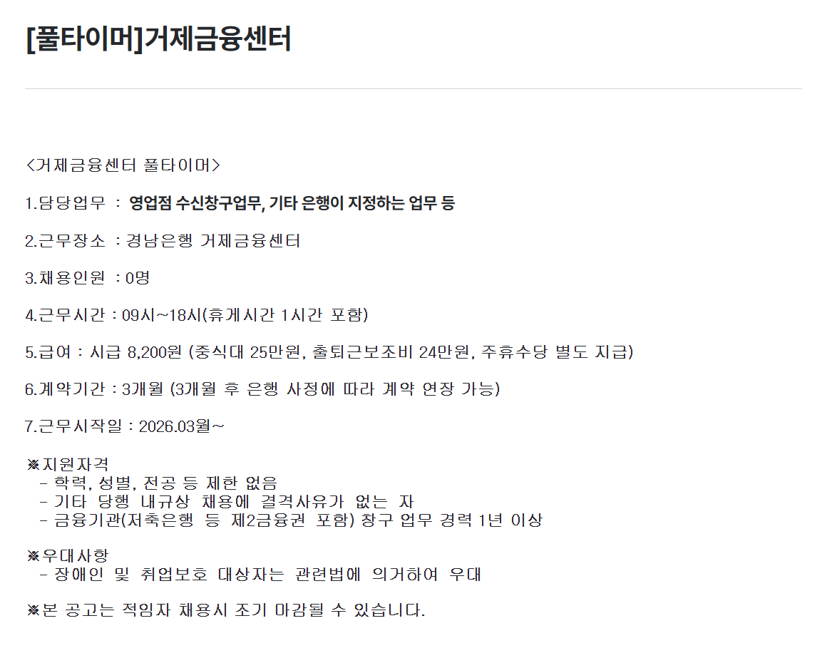 6.계약기간 : 3개월 (3개월 후 은행 사정에 따라 계약 연장 가능)