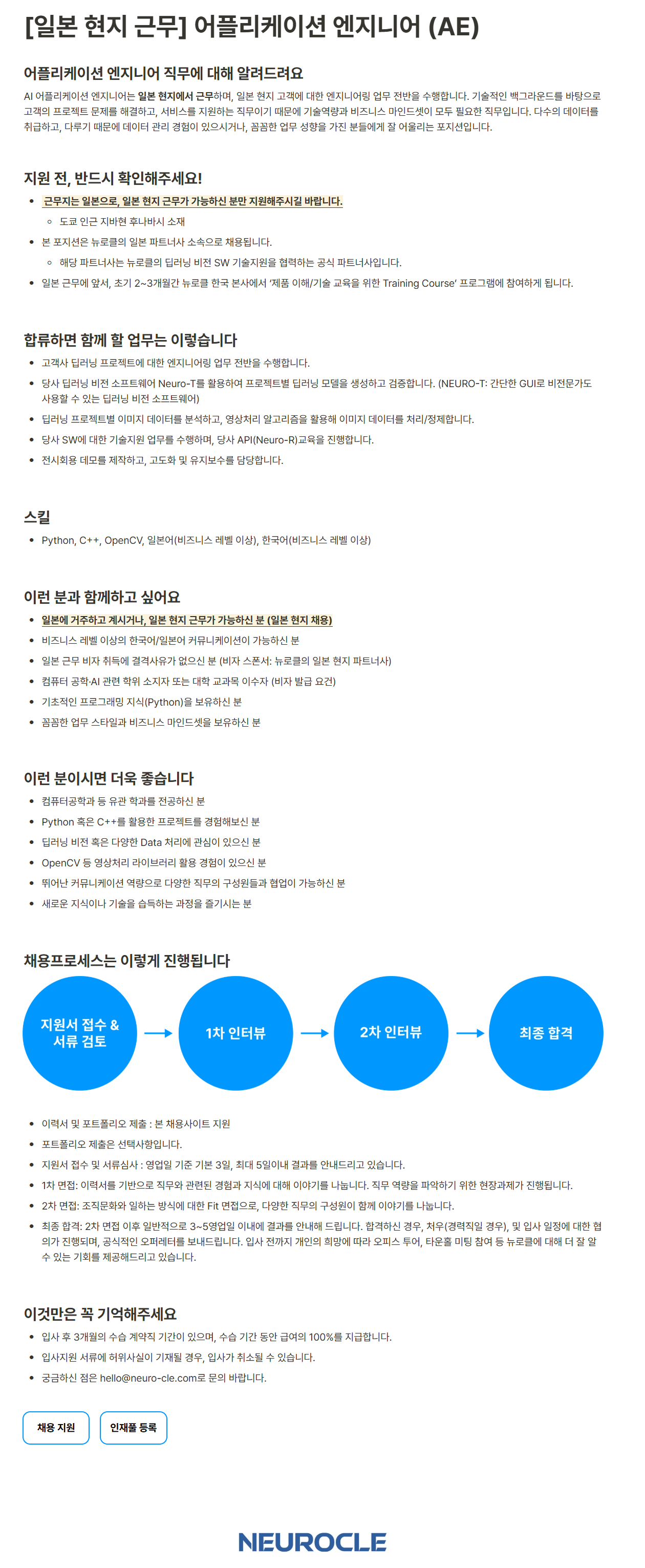 [뉴로클] [일본 현지 근무] 어플리케이션 엔지니어 (AE)