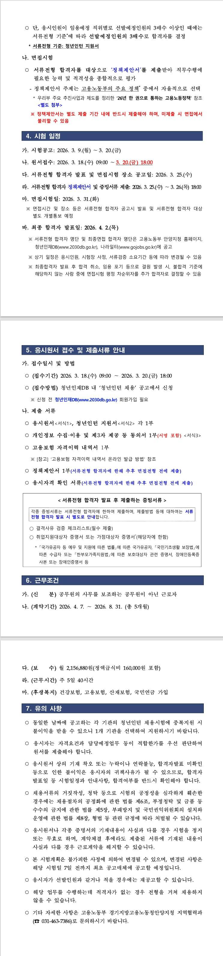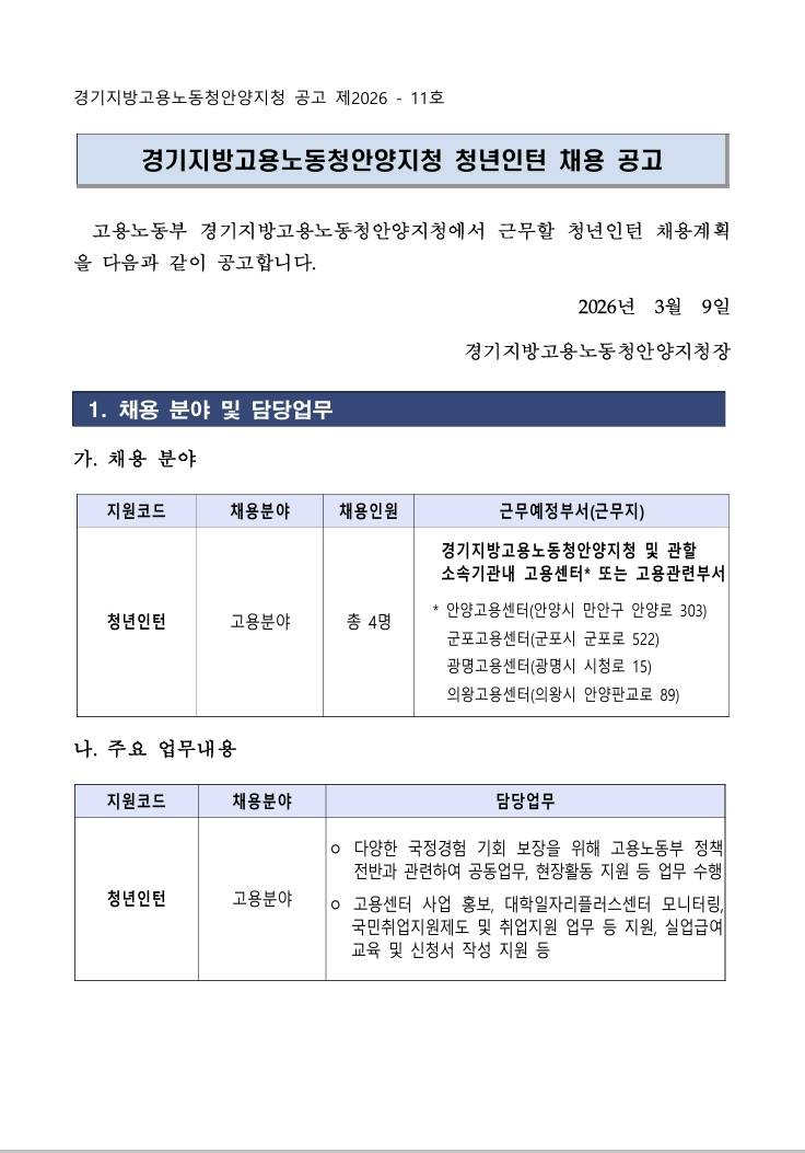[안양고용노동지청] 2026년 고용노동부 안양지청 청년인턴 채용공고