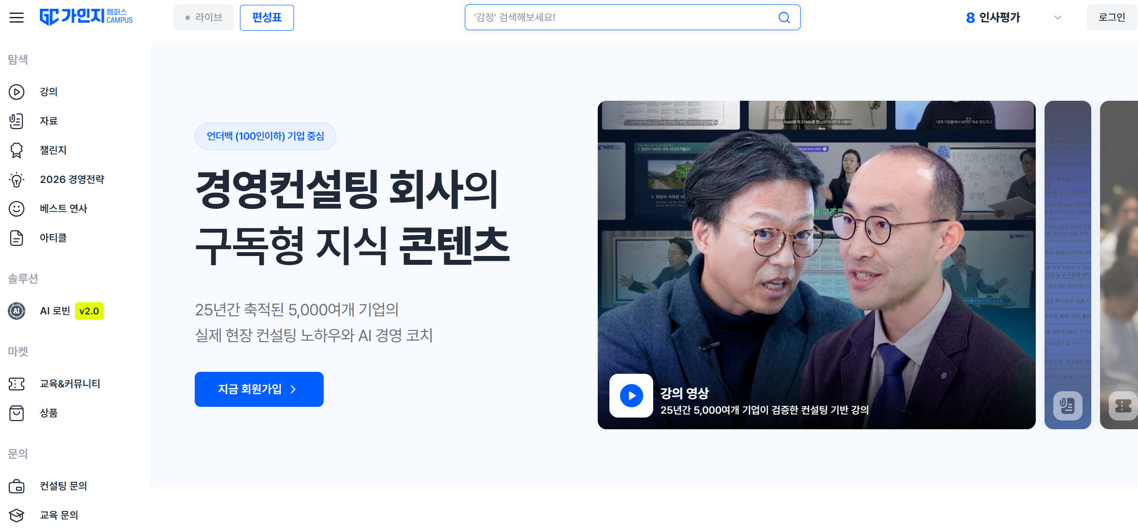 경영자 대상 온라인 교육 플랫폼 가인지캠퍼스의 콘텐츠를 자유롭게 이용할 수 있습니다.