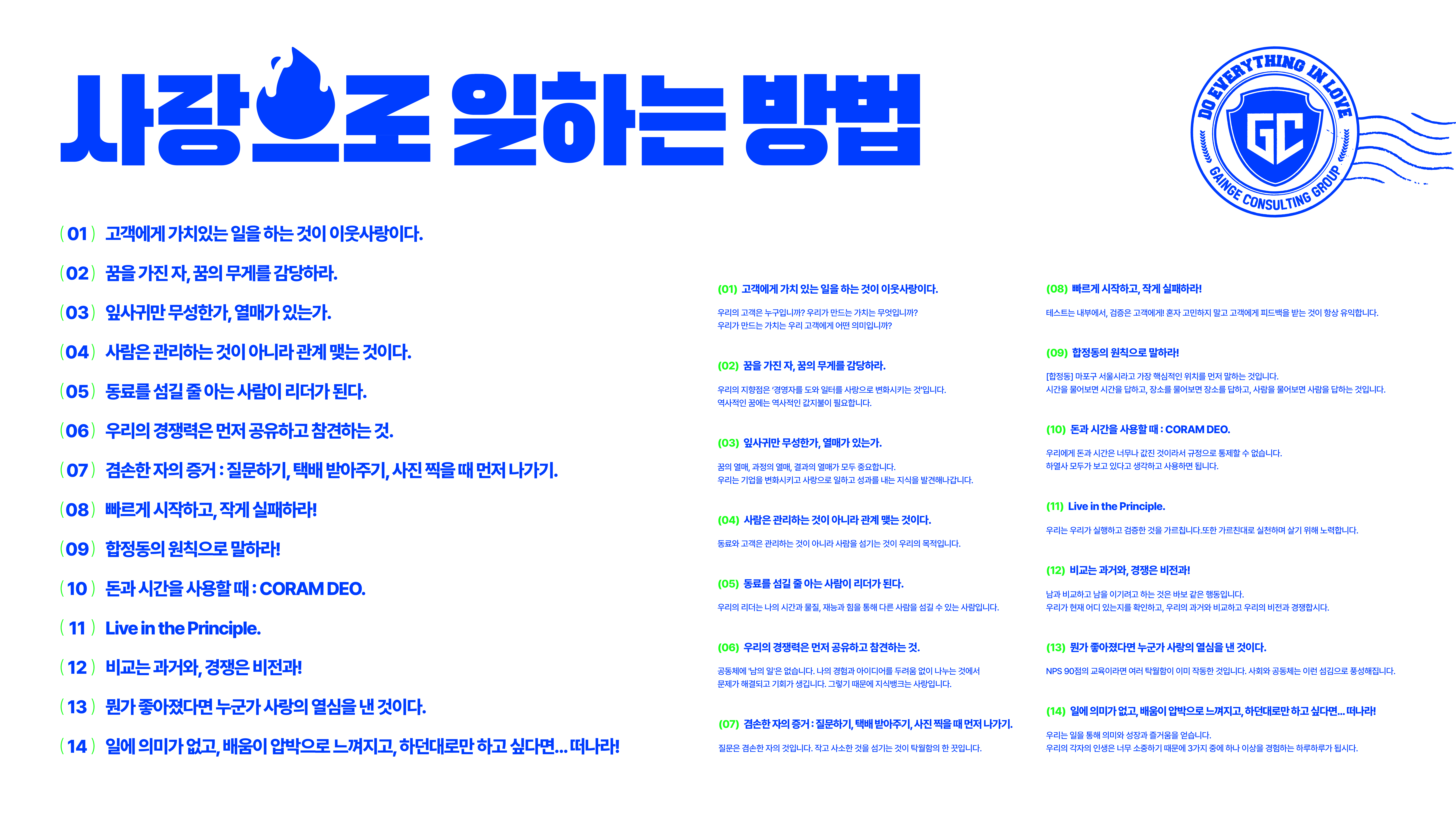 가인지컨설팅그룹에는 비즈니스 세계를 사랑으로 변화시키고자 하는 구성원들이 모여있습니다.