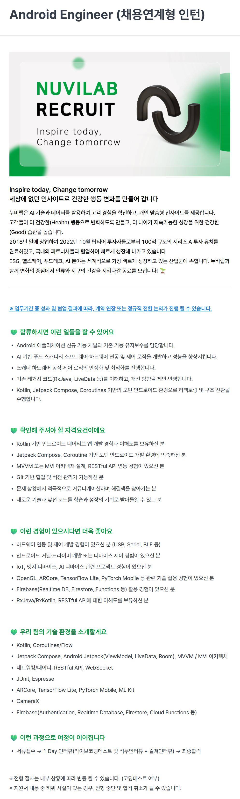 [누비랩] Android Engineer (채용연계형 인턴)