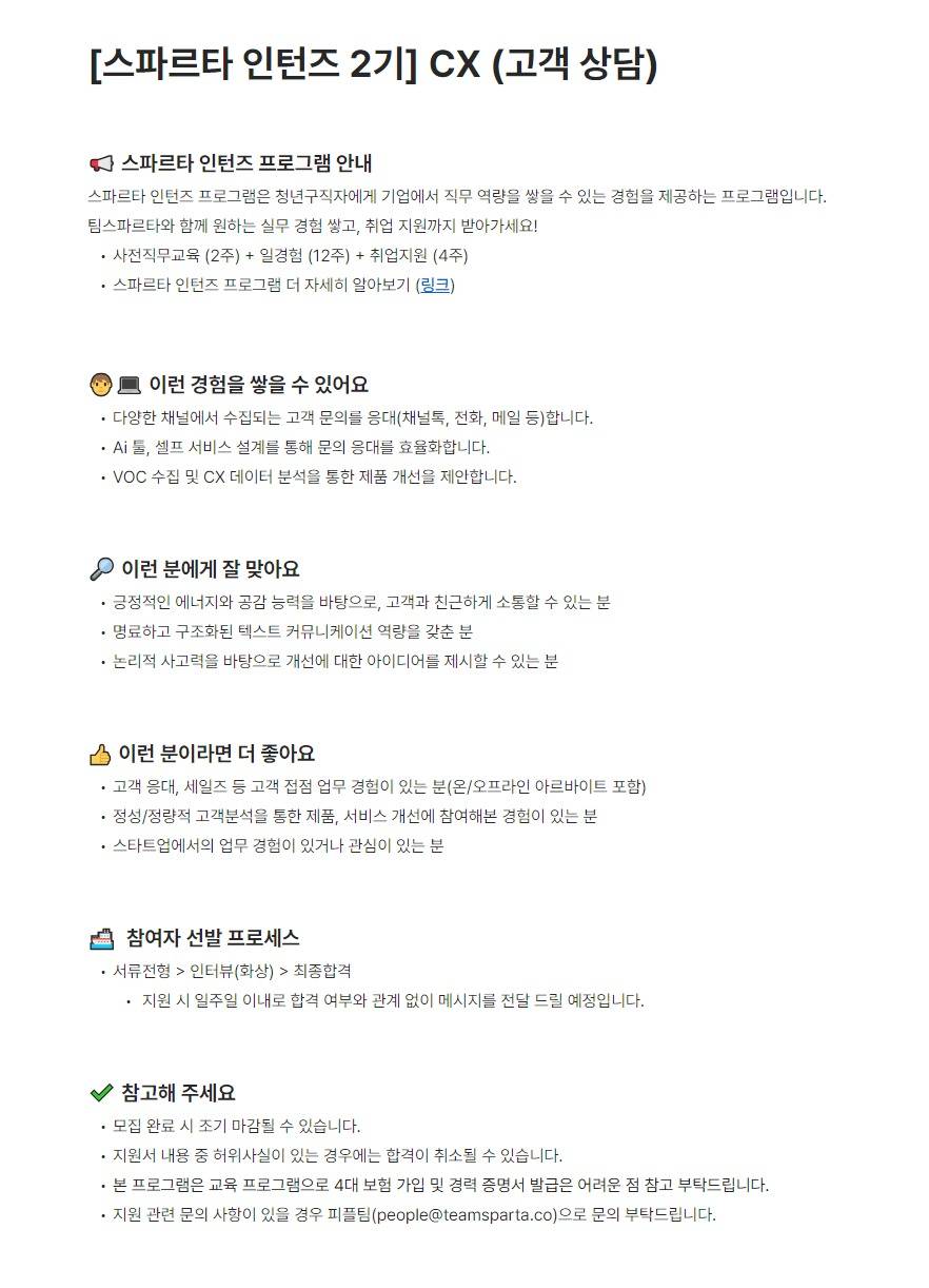 [팀스파르타] [인턴즈 2기] CX (고객 상담)