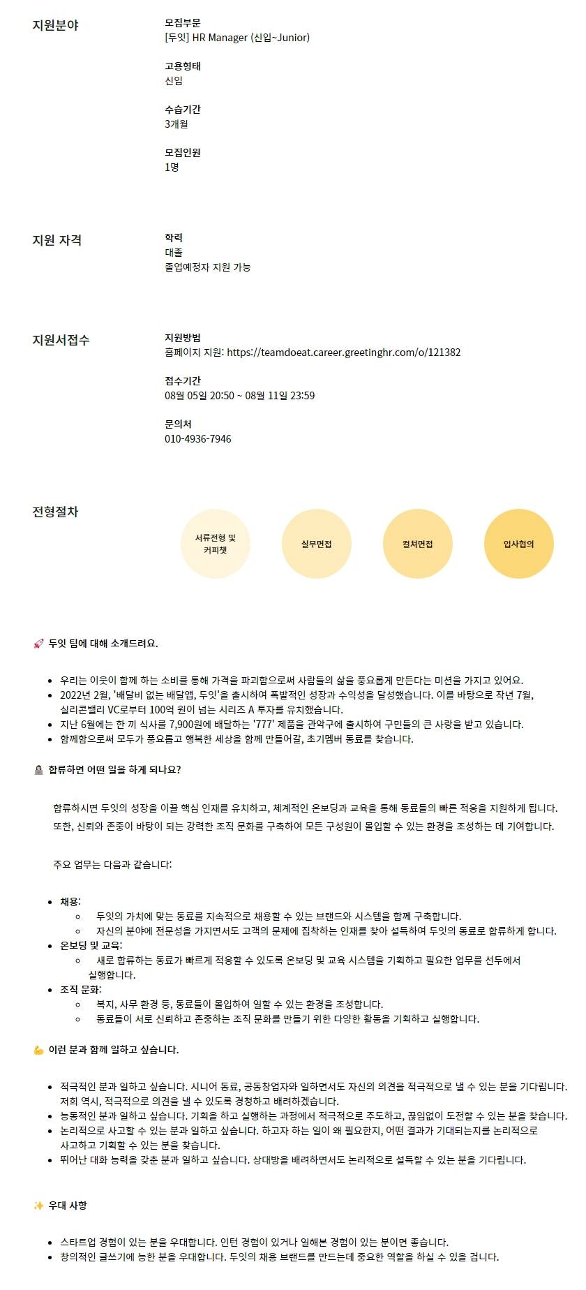 [두잇] HR Manager (신입~3년차)