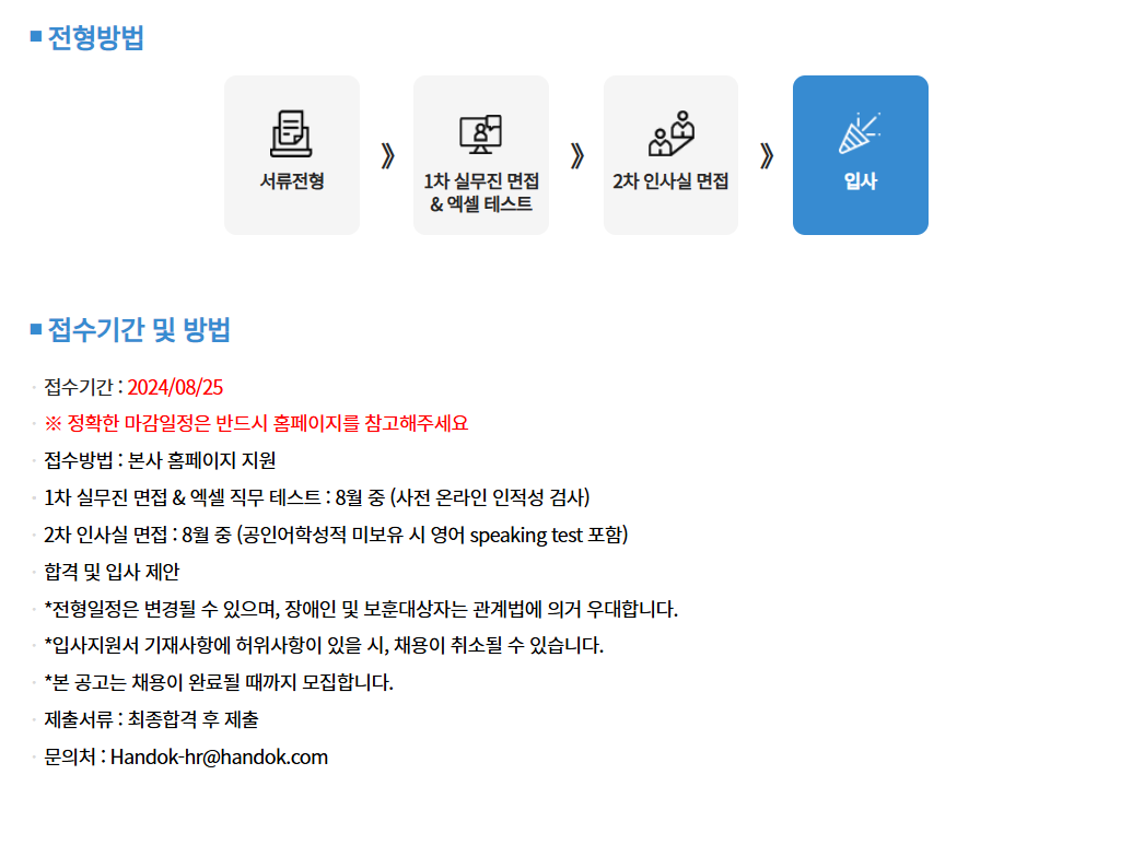 서류전형 > 실무진 면접&엑셀테스트 > 인사실 면접 > 입사