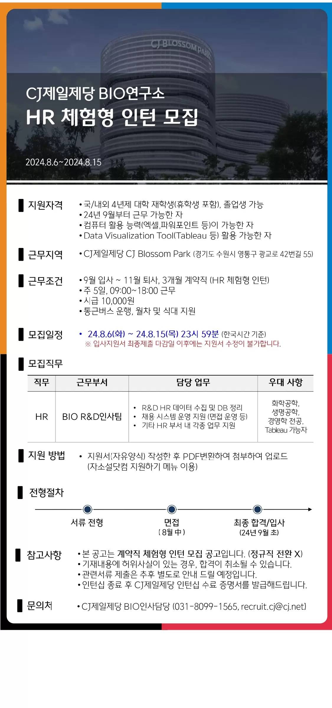 [CJ제일제당] BIO연구소 HR 체험형 인턴 모집