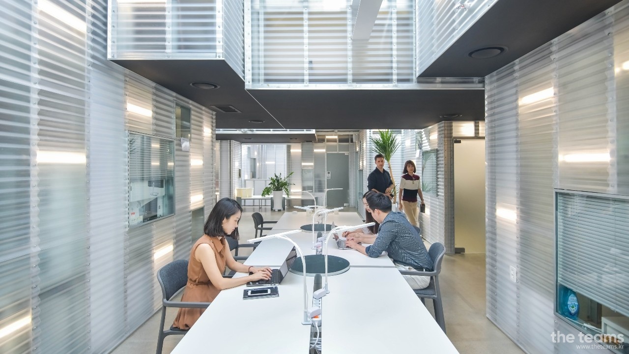 멤버들이 자연의 변화를 느끼며 건강하게 일할 수 있는 환경과 우연하고 잦은 마주침은 멤버들의 유연하고 창의적인 발상을 이뤄낼 수 있는 ‘니오스러운’ 문화입니다. 내부와 외부가 이어지는 공간, 사람으로 연결합니다. 작업에 필요한 물리적, 경제적, 문화적, 그리고 전문인력까지 공간을 중심으로 가치실현의 새로운 경험을 제공합니다.
