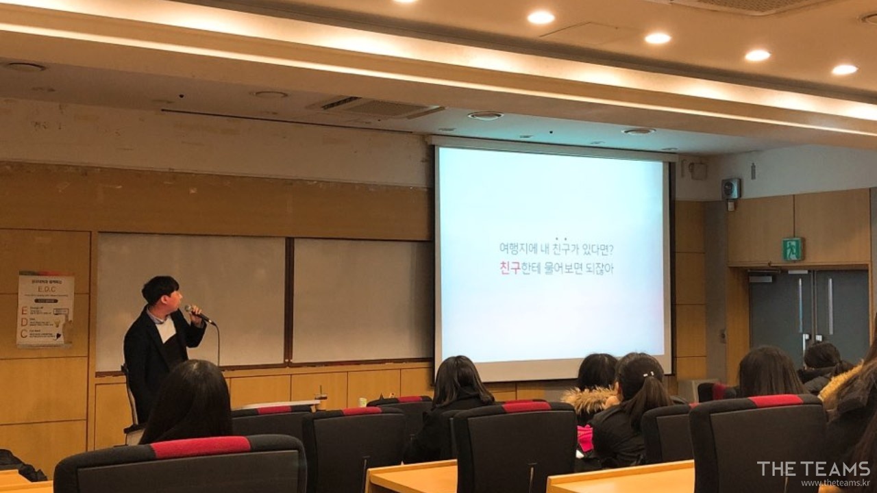 외국인 자유여행객들은 여행 중 불편사항이나 궁금증이 발생했을 때 문의할 곳이 마땅치않습니다. 지자체 콜센터가 그 역할을 하고 있다고 하지만, 여행객들은 콜센터에 전화를 걸 때 로밍전화 요금이 1분당 7000원정도가 부과되기 때문에 실제로 이용하는 사람은 거의 없는 실정입니다. 저희는 이러한 문제점을 현지인과의 채팅 매칭으로 해결하고자 했습니다. 이제 외국인 여행객들은 현지인들에게 편하게 물어보고, 현지의 가장 최적화된 서비스나 도움을 제공받을 수 있습니다.
