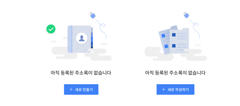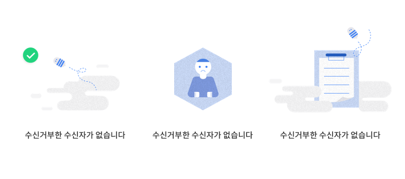 다음은 주소록 세부 항목 중, 수신거부한 수신자 목록 페이지의 empty-state 일러스트입니다. 사람, 리스트 이미지를 활용해 봤지만 수신거부한 수신자 목록 페이지 외에도 다양한 목록이 비어있을 때 활용하기 좋아 왼쪽 일러스트를 최종 시안으로 선택했습니다.