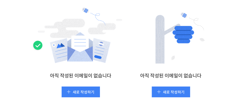 empty-state에 사용하는 일러스트는 정보가 없음을 나타내는 이미지로, 서로 비슷한 맥락으로 페이지를 설명합니다. 하지만 요구하는 정보가 각각 달라 가장 직관적으로 사용자 행동을 유도하기 위해 많은 것을 덜어냈습니다.