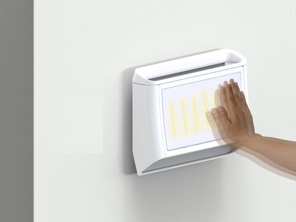 Slide Air Purifier by 준태. 창문을 열듯이 손을 오른쪽으로 밀면 공기청정기가 작동하는 것이 인상적이다.